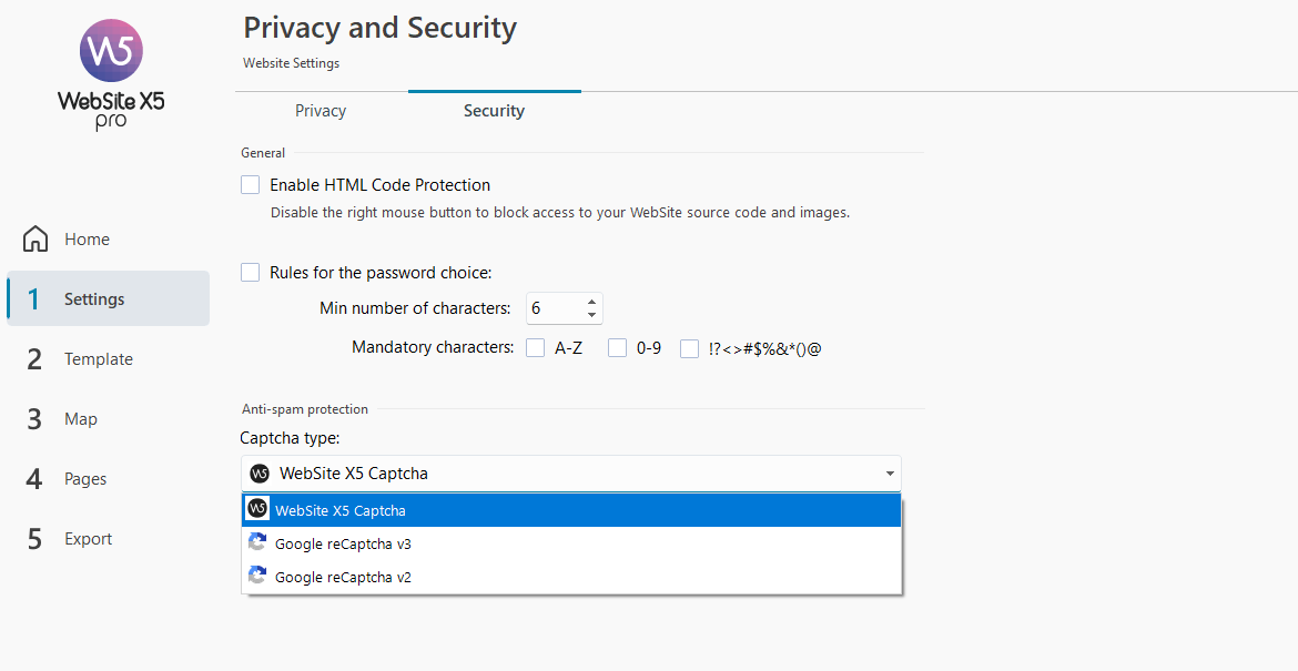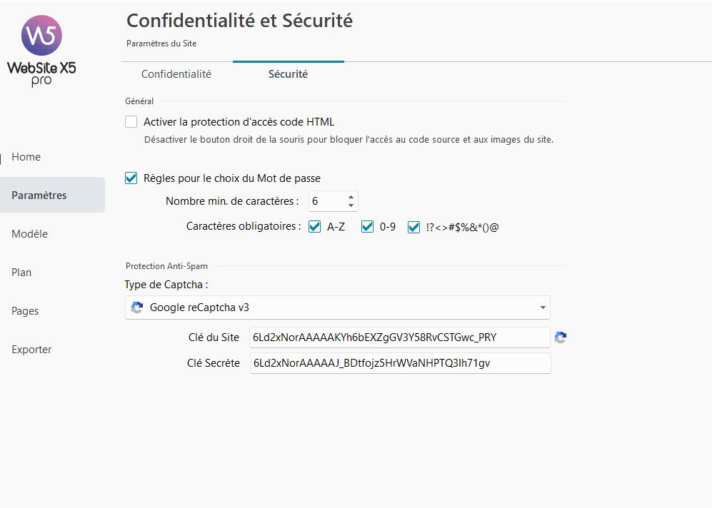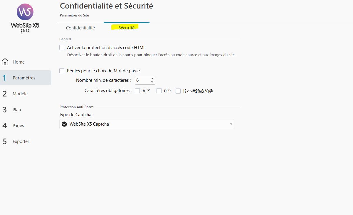 dans l’Étape 1 - Paramètres ---> Confidentialité et sécurité, vous pouvez choisir la version du captcha à utiliser. Je vous recommande reCaptcha v3.