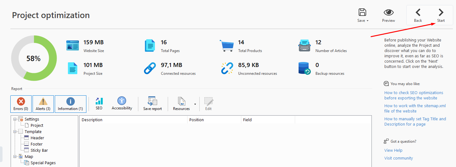 pourriez-vous cliquer à nouveau sur le bouton Démarrer dans la section Optimisation du projet ?