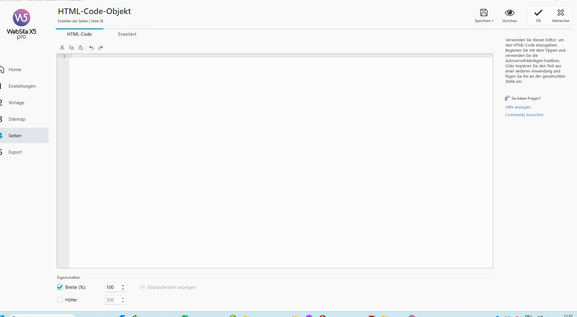 Ich habe eine Seite eingefügt und dann den HTML Code, aber da ist kein Reiter Experte?