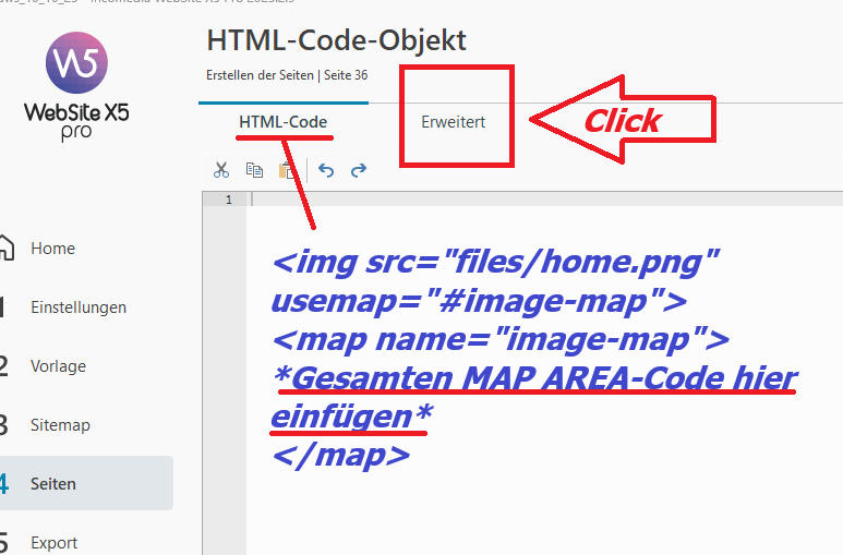 3) - Fügen Sie im Hauptreiter dieses Objekts, „HTML-Code“, den gesamten Code genau so ein, wie er angezeigt wird, mit dem korrekten Pfad zum Bild: