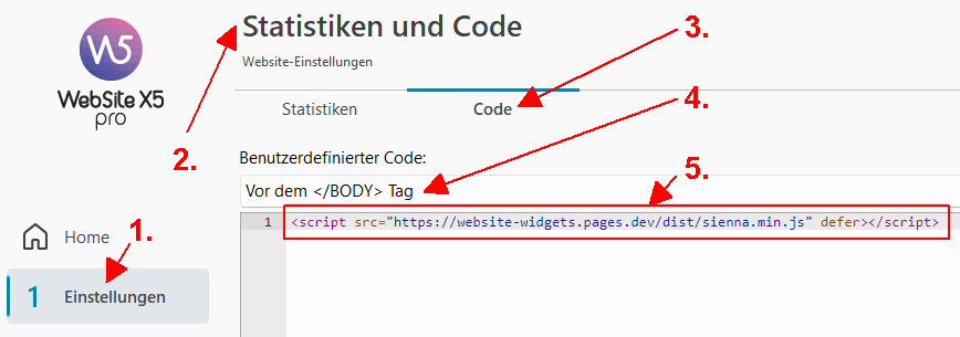 ----- Einbau in WebSite X5, siehe Screenhot -----