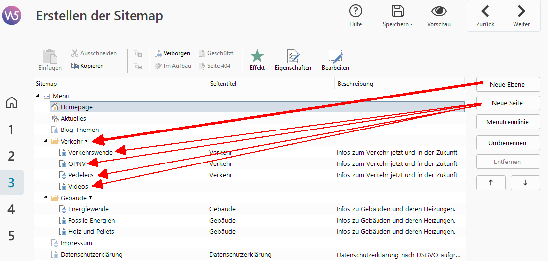 Are you referring to the levels in the sitemap that contain subpages and open when you hover over them or click?