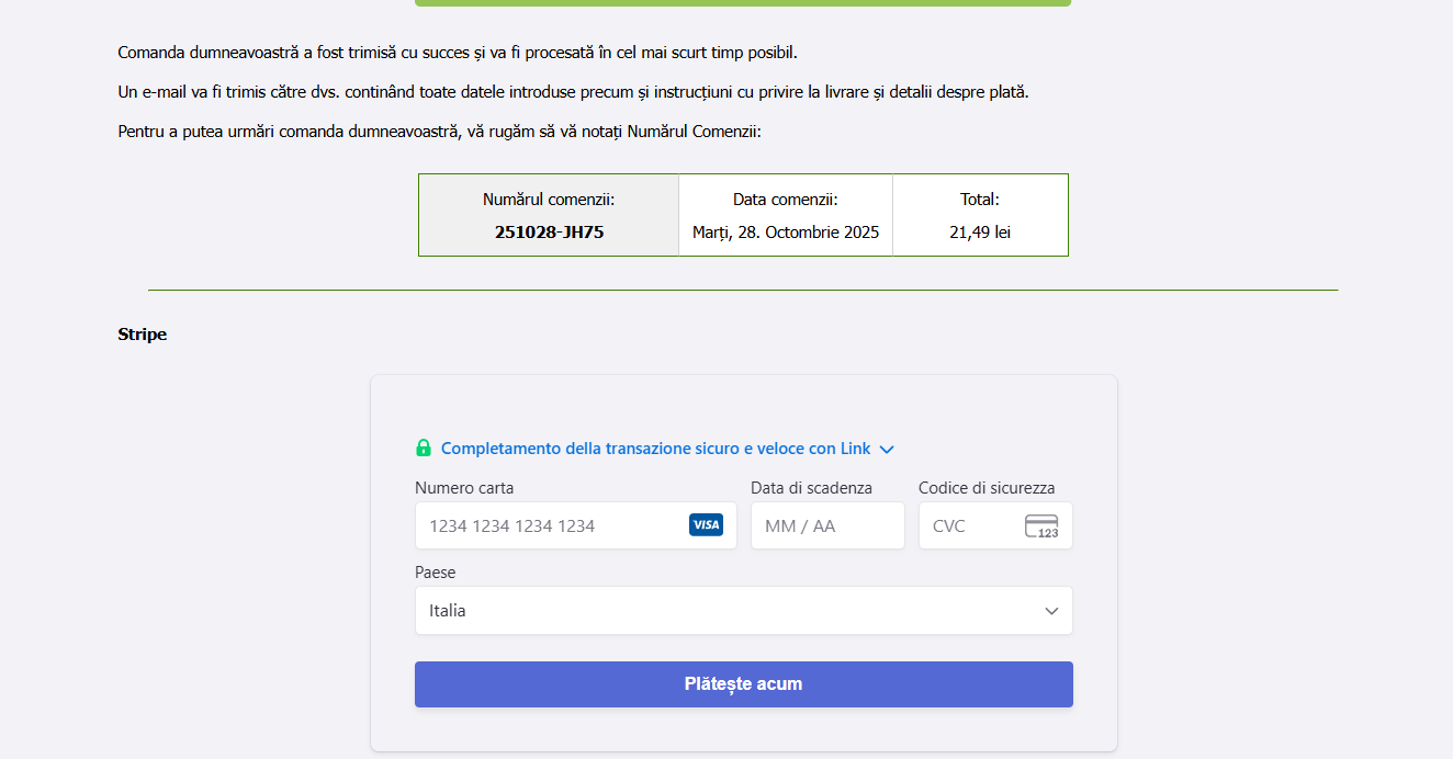 I have a problem, I integrated Stripe payment into my online store, I created an account, everything seems to be functional, but when completing the order, after I click Pay, I see that little circle and it doesn't connect further where it should ask for card details.