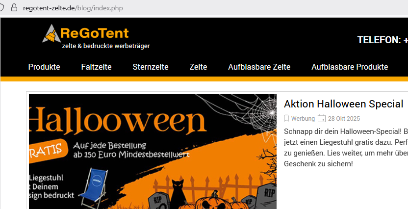 - Klicke mal im Menü auf "Blog", dort kommt nur Text ohne Bild
