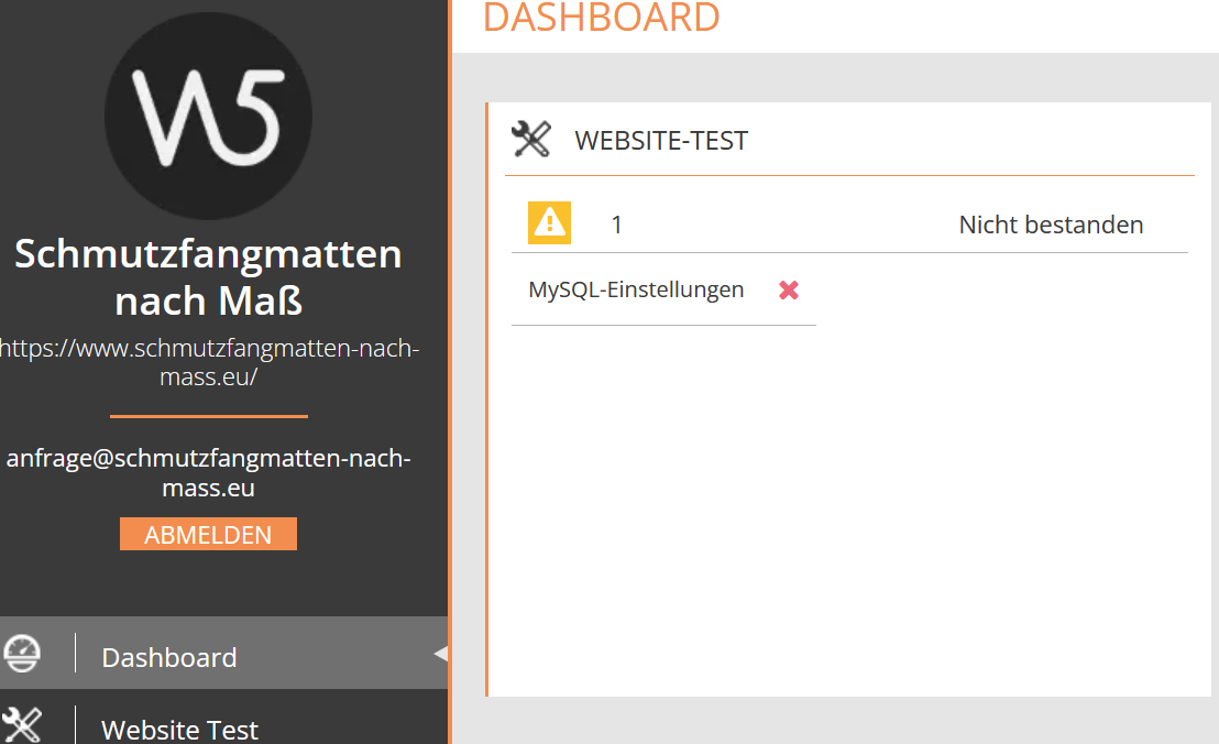 Sie finden es, indem Sie sich im Kontrollpanel unter https://www.schmutzfangmatten-nach-mass.eu/admin anmelden – mit den Zugangsdaten eines der Benutzer, die in Schritt 1 – Einstellungen → Zugriffsverwaltung als Administrator festgelegt sind.
