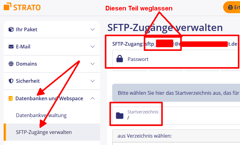 Strato sftp upload, keine Verbindung zum Server