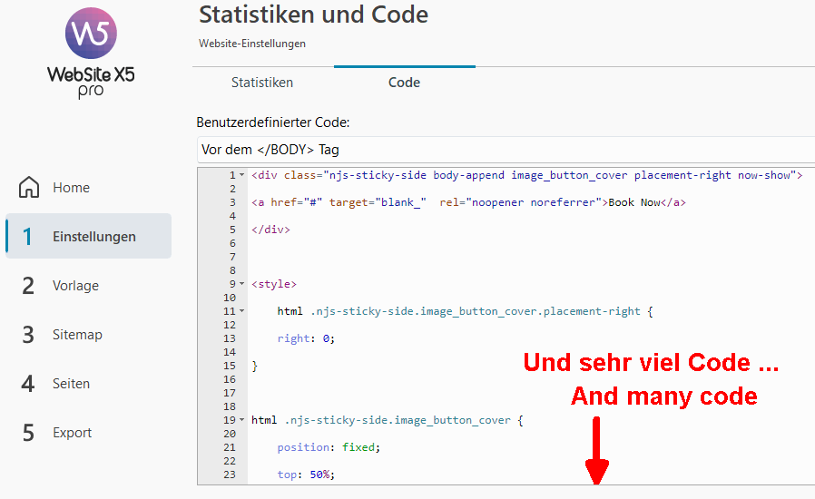 ... eingefügt werden und der Sticky-Buttons (HTML/CSS-Code) ist auf alle Seiten zu sehen.