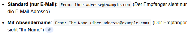 Ich möchte aber, dass dort gar keine Mailadresse steht. Es soll einfach „Funkelwelt“ angezeigt werden. Ist das möglich?