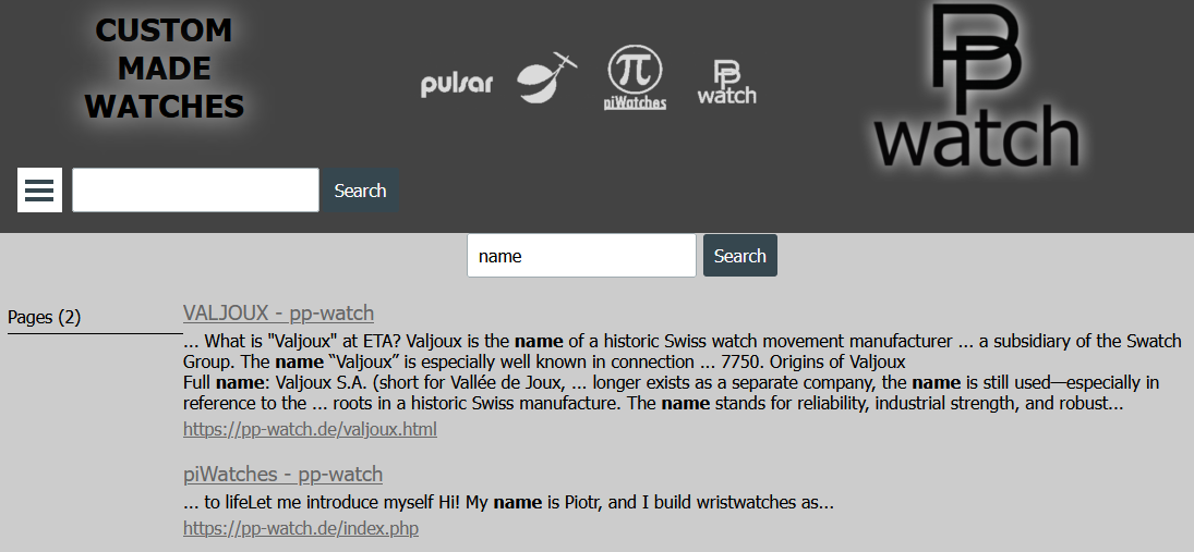 Habe https://piwatches.de/ aus dem Profil verwendet, erstellt mit der aktuellen Evo-Version.