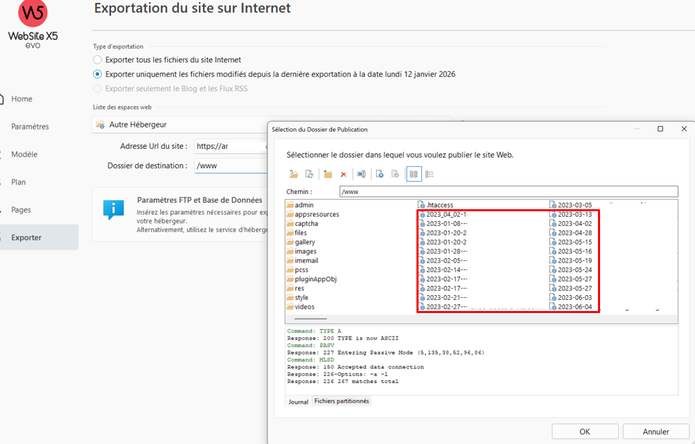 Exportation du site et Dossier de destination