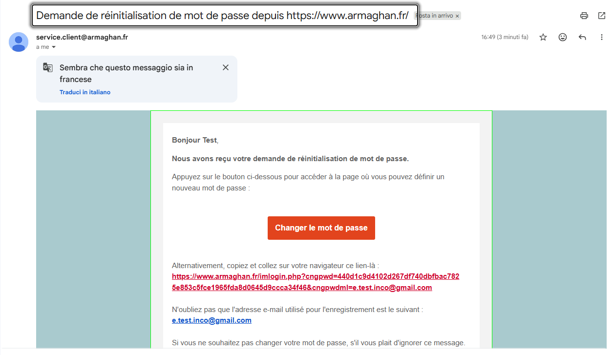 Si je clique sur "Renvoyer l'e-mail de validation" ou sur "Envoyer e-mail pour réinitialiser votre mot de passe" j'obtiens bien le statut "Complété avec succès" mais l'utilisateur lui ne reçoit aucun e-mail dans l'un ou l'autre des 2 cas.