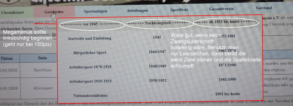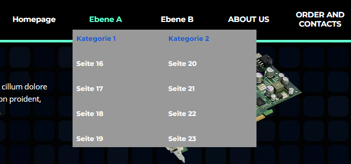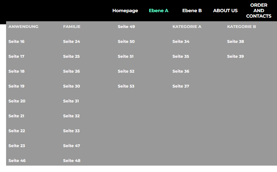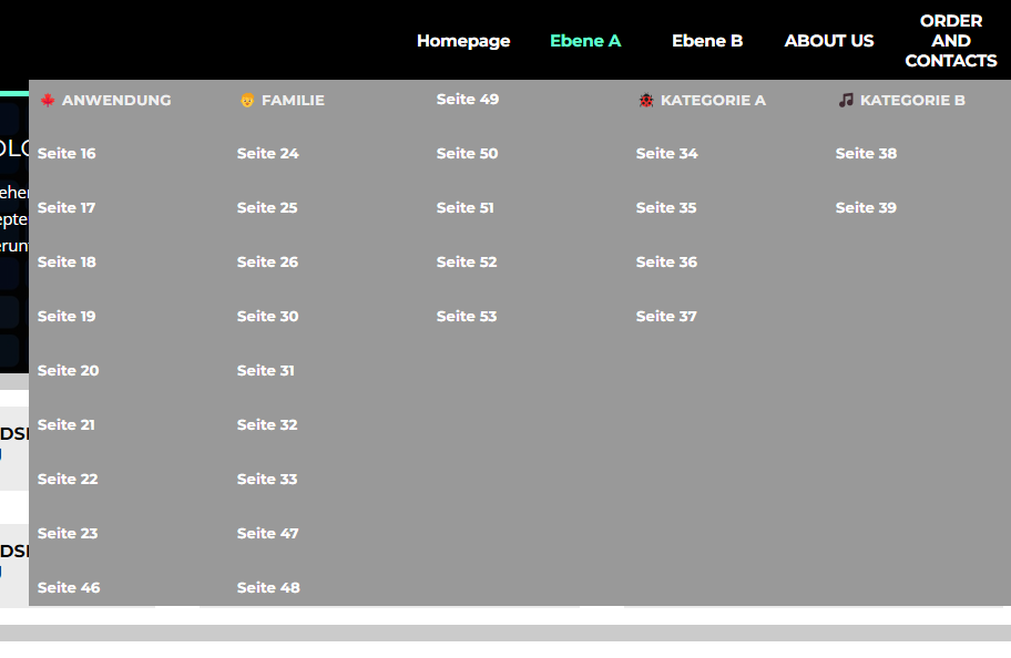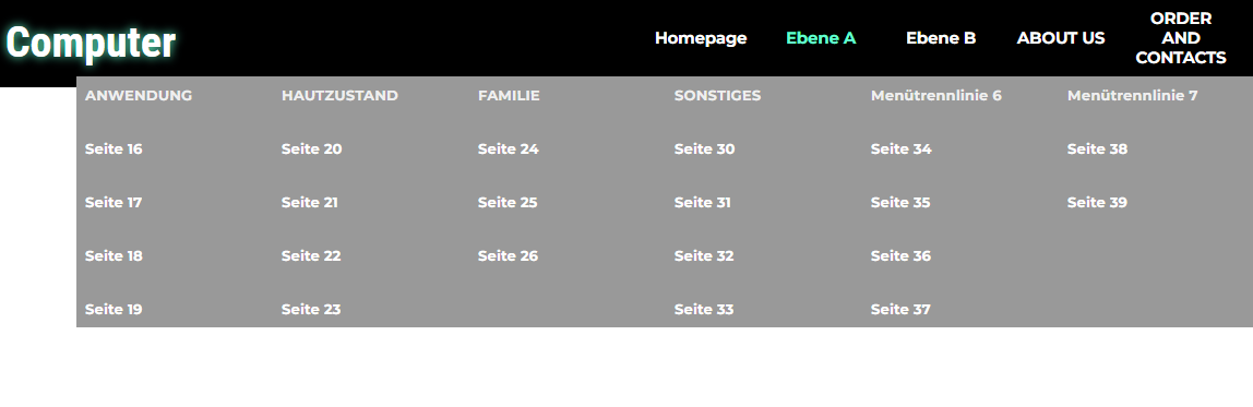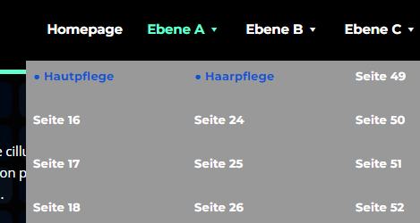 Dann wird alles ausgefüllt. Sollte nur 1 Unterseite in der 1. Spalte sein, dann Menütrennlinie und in der 2. Spalte dann 3x Unterseiten, erscheinen dort die Abstände und der Hintergrund wird nicht ausgefüllt. Sehr eigenartig