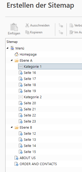 ----- Sitemap mit Ebenen und Menütrennlinien -----