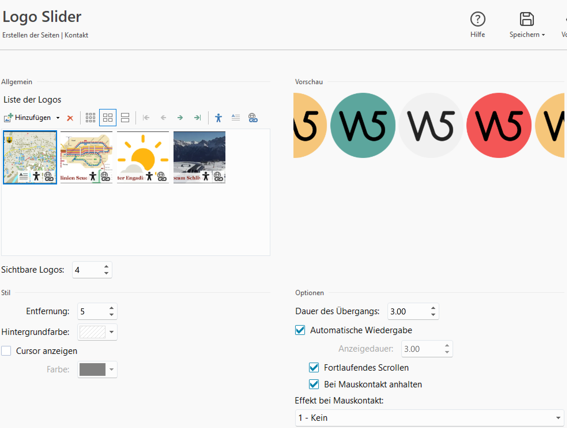 Beim Objekt "Logo Slider" müssten anderen Nutzer bzw. JavaScript-Experten helfen.