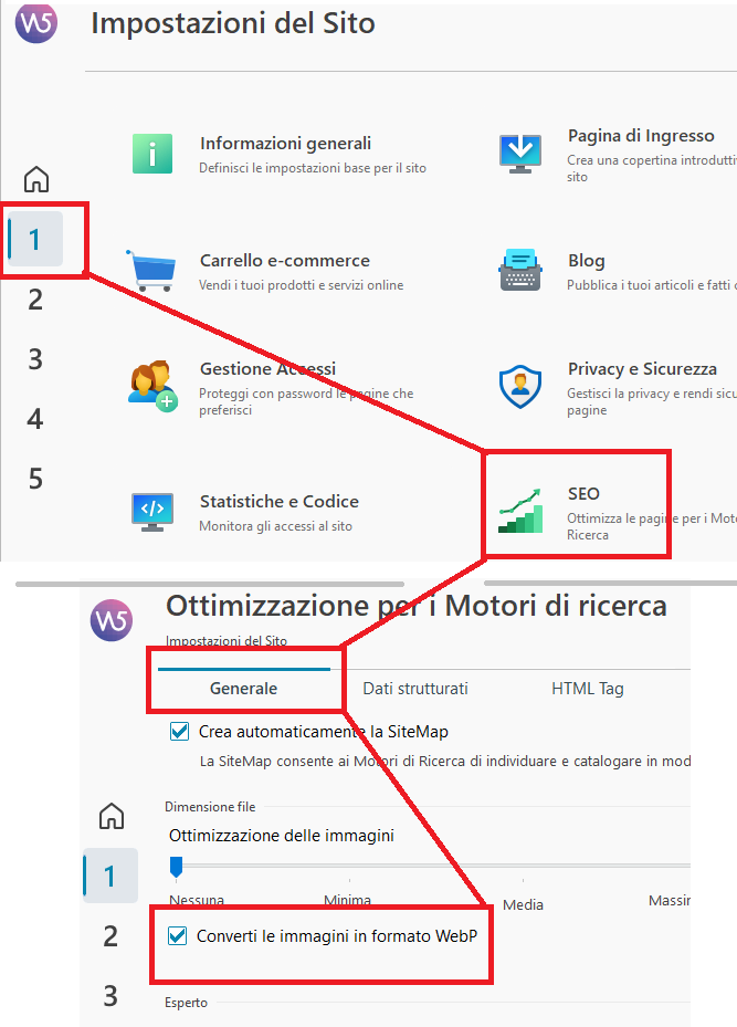 si ho usato l'opzione converti le immagini in webp