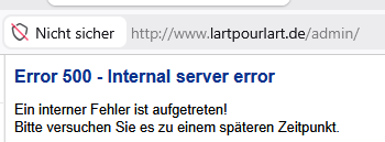 Der Adminbereich von WebSite X5 lässt sich nicht aufrufen, siehe Screenshot