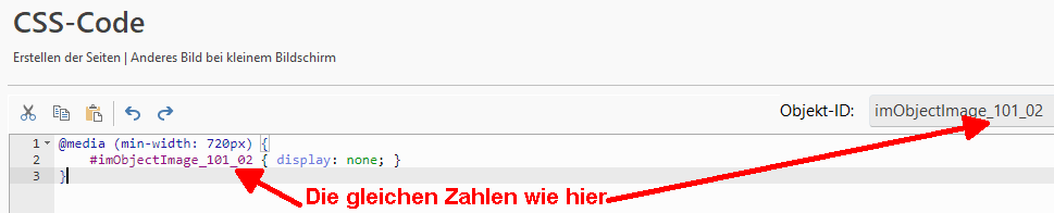 Wichtig ist, dass die Zahlen beim CSS-Code mit den Angaben bei "Objekt-ID" zusammen passen.