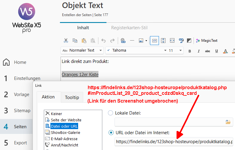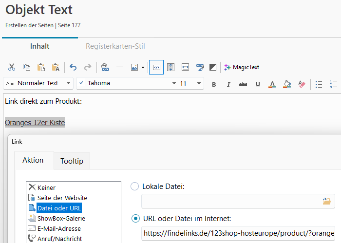 Diese Linkadresse des Produkts kann dann als Text-Link verwendet werden, siehe
