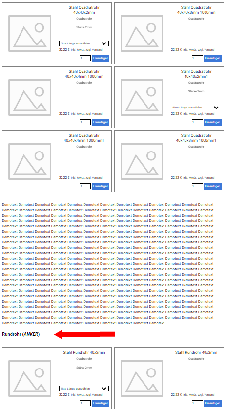 Evtl. ist vor dem Objekt "Produktkatalog" ein Objekt "Text" (mit 1 bis 2 Punkten untereinander) erforderlich, das als Anker verwendet wird, damit der Browser nicht zu weit nach unten scrollt.