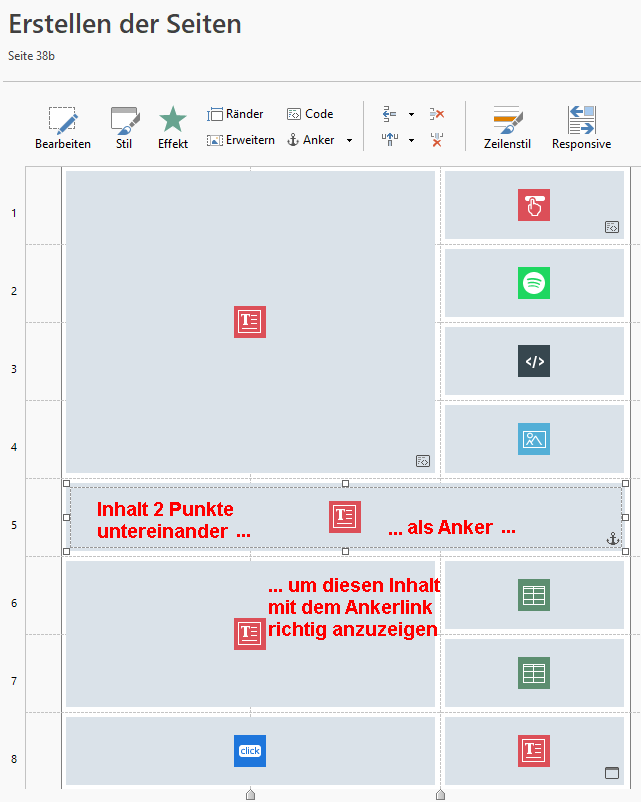 Vielleicht hilft es dem Objekt "Produktkatalog" einen größeren oberen Rand zuzuweisen, falls der Ankerlink zu weit nach unten scrollt und man kann sich das zusätzliche Text-Objekt sparen.