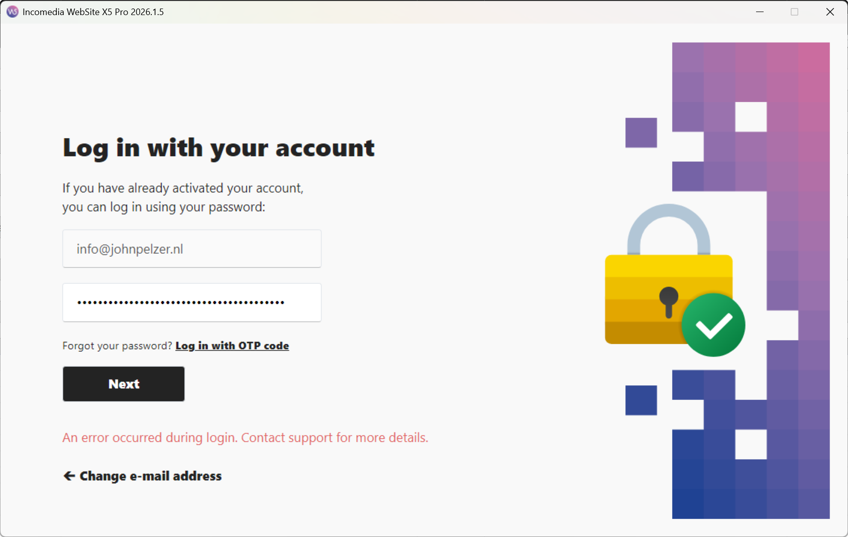 I'm having trouble logging in, Eric. I can enter the login details in the tab bars, but I get an error message when I try to log in with my password. See attachment. If I try with an OTP code, I don't receive an email with 6 digits.