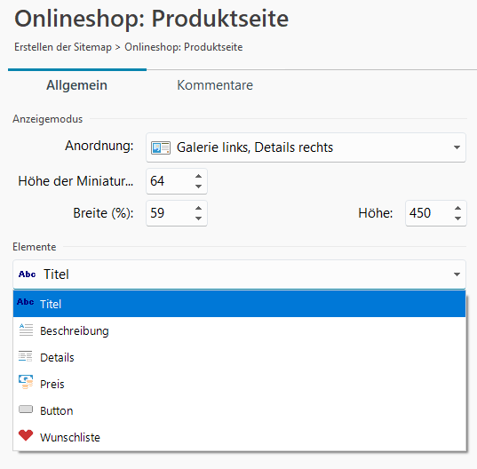 Bei WebSite X5 unter "3 Sitemap" ganz unten bei den Spezialseiten die verschiedenen Einträge zum Shop markieren und dann oben auf "Bearbeiten" klicken, um die Einstellungen vorzunehmen.