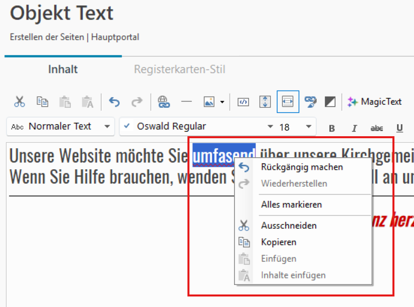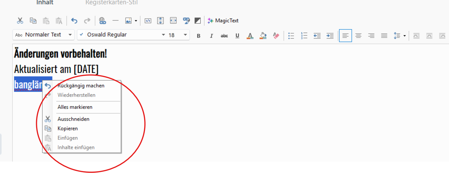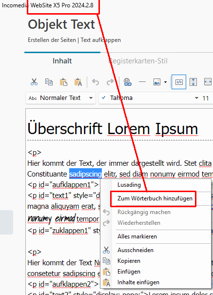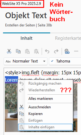 seit einiger Zeit funktioniert im Textobjekt die Rechtschreibprüfung nicht richtg. Bestimmte fehlerhafte Wörter (Namen, Orte usw.) werden vermutete Fehler zwar mit roten Unterstrichen gekennzeichnet, jedoch wird bei Rechtsklick kein Kontektmenü mit Ersatzangeboten oder der Option "Hinzufügen zum Wörterbuch" mehr angezeigt.