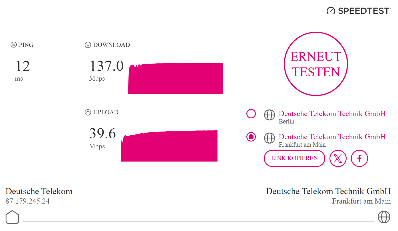 Wenn Sie Ihr Netzwerk mit https://www.speedtest.net/ oder ähnlichen Tools prüfen, welche Ergebnisse erhalten Sie?