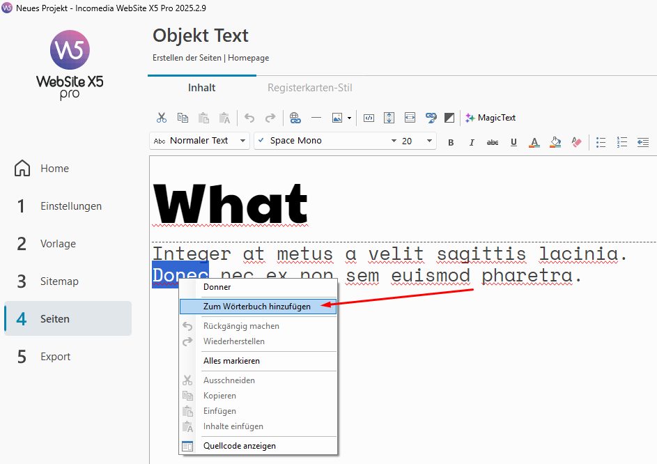 Im Kontextmenü werden keine Optionen zur Rechtschreibung angetzeigt.