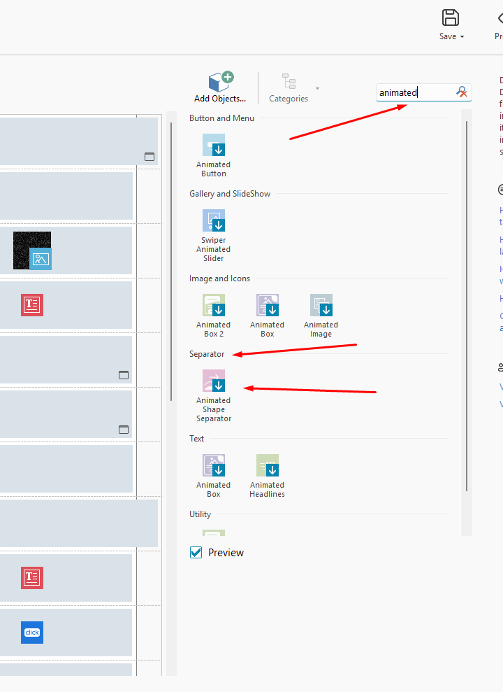 Vielleicht in WebSite X5 über "Objekt hinzufügen ..." das bereits gekaufte Objekt markieren und mit "OK" bestätigen und dann oben auf "Kategorien" klicken und "Separator" anklicken.