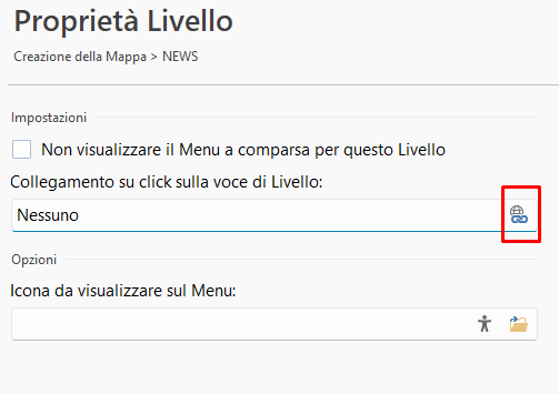 ▪Collegamento su click sulla voce di Livello: associa, attraverso la finestra Collegamento richiamata, un collegamento direttamente alla voce di Livello.