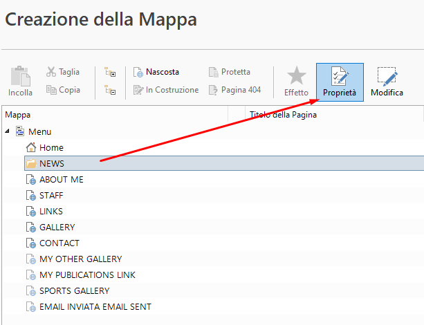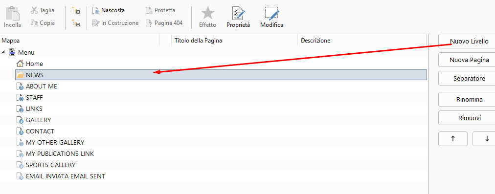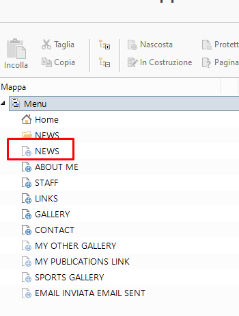 Nel mio esempio io ho cancellato la pagina NEWS ma se non vuoi eliminarla puoi tenerla impostandola ad esempio come nascosta: