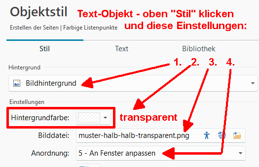 Hintergrundbild ist links transparent und rechts mit Muster, Einstellung siehe Screenshot (2)
