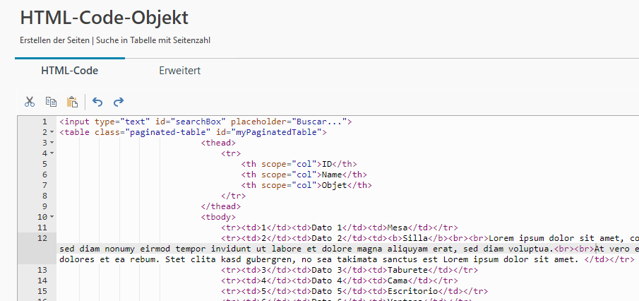 Thanks Miguel for sample of search and pagination.. It also can be used although enter all data manually, but it is possible make long text or paragraph too in every row, isn't it?