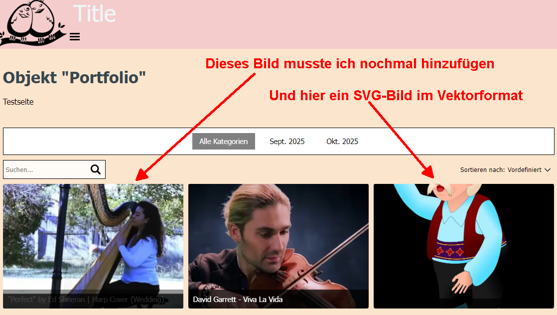 Beim Objekt Portfolio kann man keine Onlinebilder einfügen von Depositfoto!