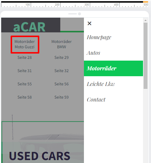 I further developed my idea and now copied the respective menu object of the 4 menu items and pasted it onto the respective pages of the layers so that the layer menu is also visible here.