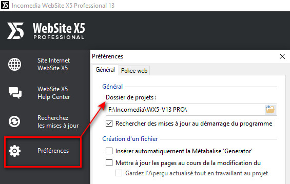 Tu n'as rien à la rubrique "Préférences" concernant le chemin des projets ?