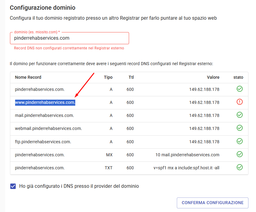 I changed the CNAME record to a Type A record, but still get the error with that line.