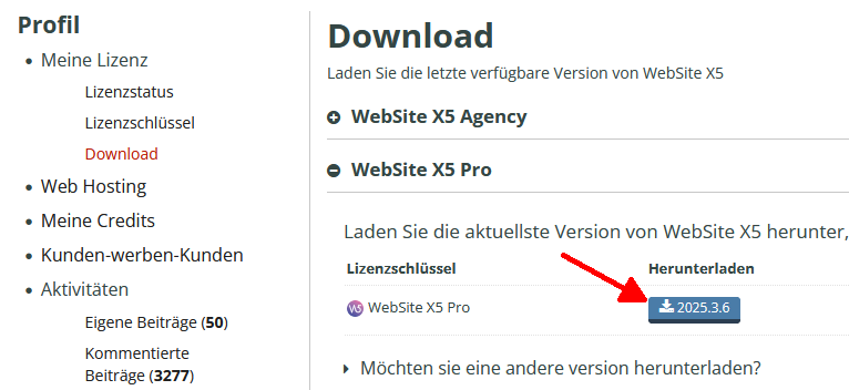 Der Download von WebSite X5 Pro 2025.3.6 über das Profil funktioniert bei mir einwandfrei, Download in etwa 1 Minute, und das obwohl ich Kunde bei der Deutschen Telekom bin.