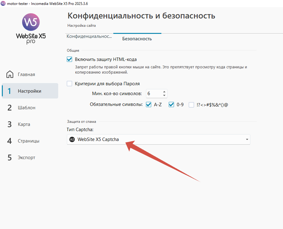 При выборе Website X5 Captcha при проверке в разделе Оптимизация проекта появляется ошибка - Каптча Website X5 не поддерживает специальные возможности.