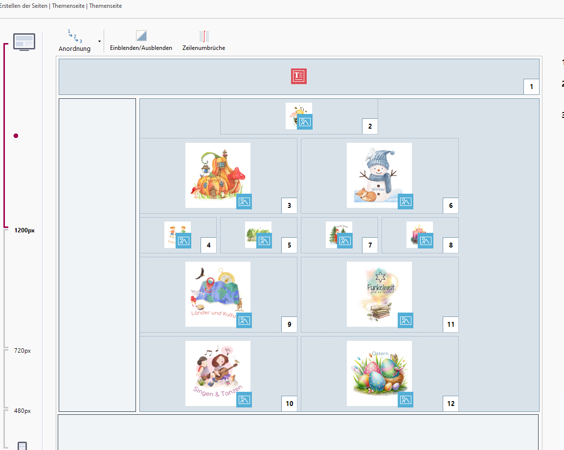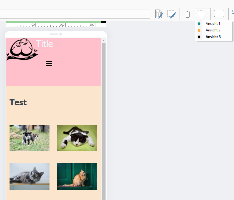 Ansonsten gibt es auch das Objekt "Galerie", das je nach Galerietyp und Einstellung, auch 2 Bilder nebeneinander setzen kann bei einem Smartphone hochkant, siehe Screenshot unten