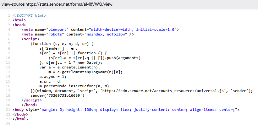 The form's link: https://stats.sender.net/forms/aM8VWQ/view