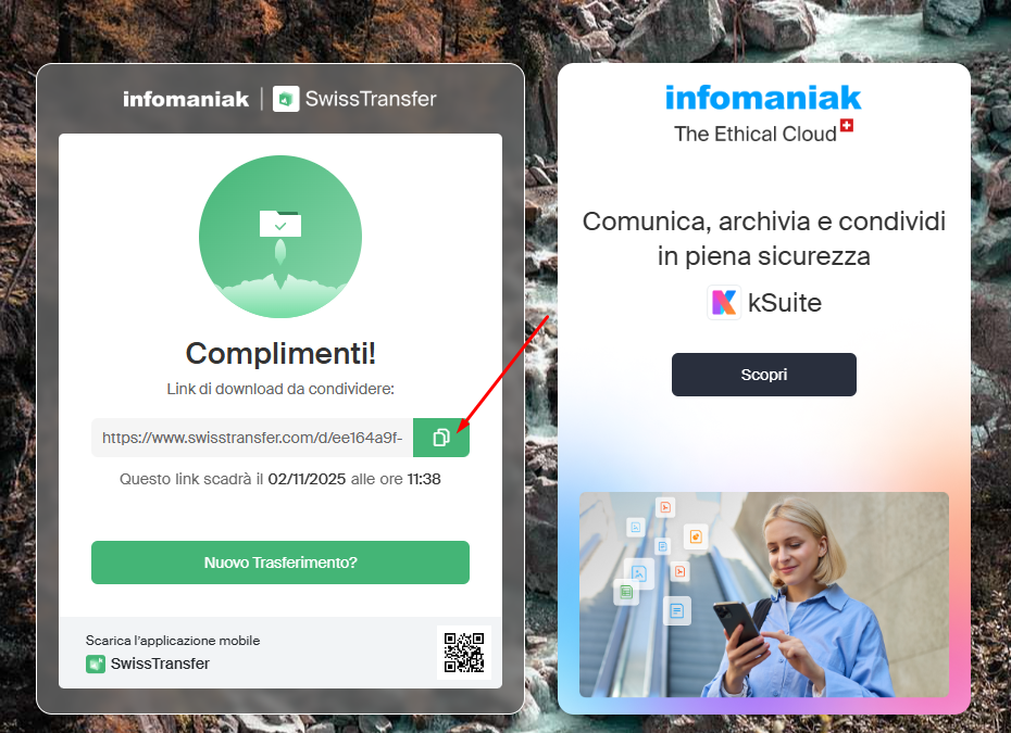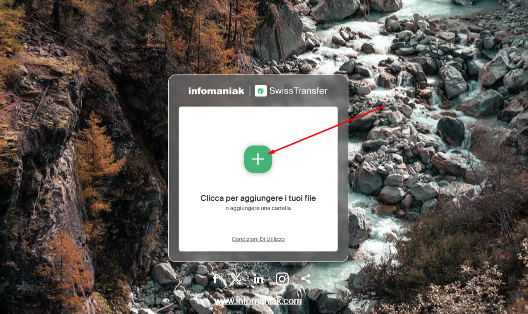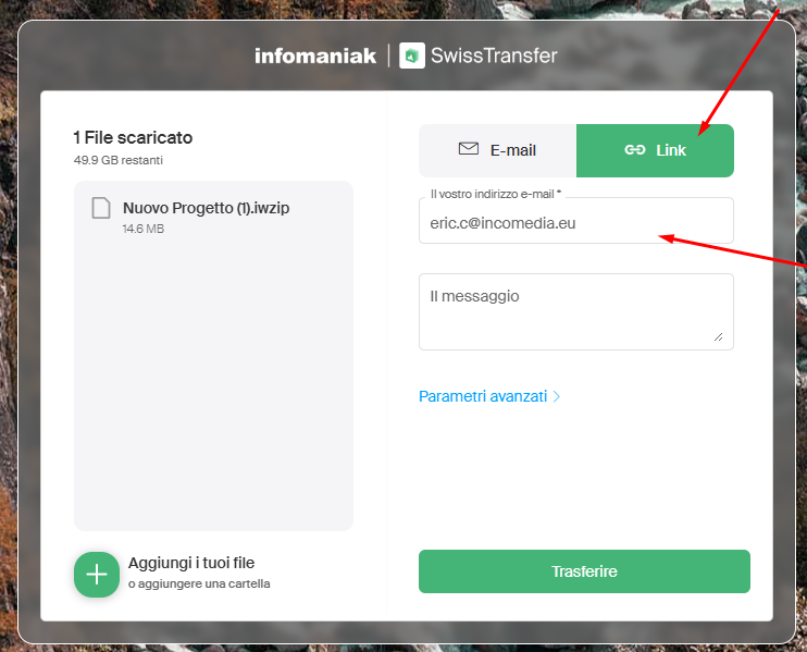 Qui sotto alcune immagini della procedura da effettuare su SwissTransfer, ad esempio: