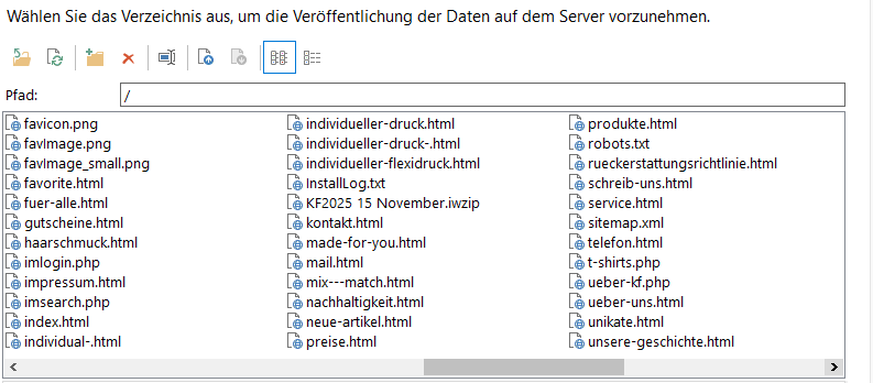 ... bei "Zielverzeichnis" rechts auf das Ordnersymbol klicken, dann öffnet sich das FTP-Fenster in WebSite X5, hier dann die Datei index.php markieren und oben auf das rote X klicken.