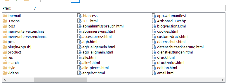 In das Verzeichnis geschaut sind dann, was index und home anbelangt, nun nur die home.html und index.php vorhanden.