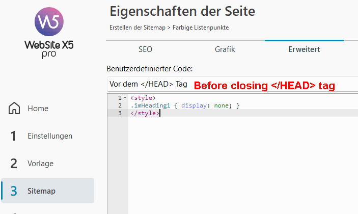 If i add the CSS, how do i enter the H1 text, i am not sure what the above means ----Before---?