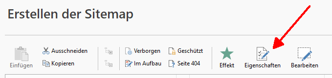 In WebSiteX5 under "3 Sitemap" select the relevant page and click on "Properties" at the top.