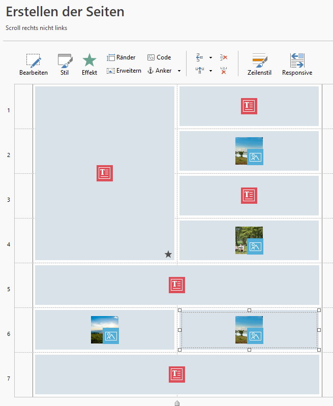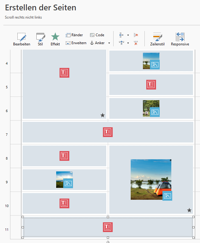 Wie zu sehen ist, muss das stehende Objekt mit dem Effekt im Raster genauso hoch sein wie die daneben liegende scrollende Objekte, damit der Effekt funktioniert.