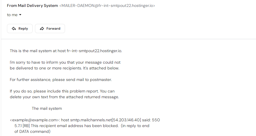 Most web hosts do not allow sending emails via script from the website to a non-domain email address, so the workaround involves setting up email forwarding with the web host.
