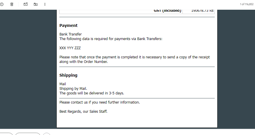When purchased a product after final Buy button, a confirmation mail appears in the sender's inbox. Below is an example -